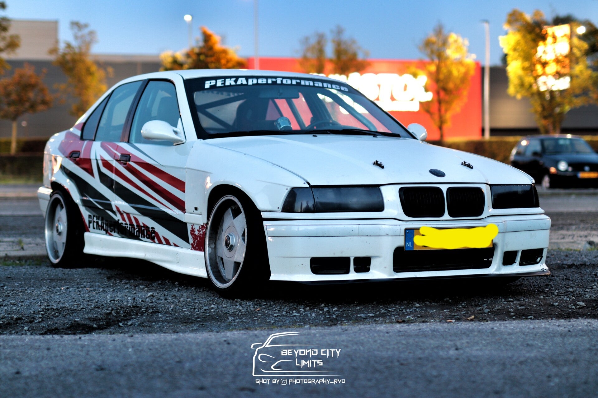 Complete ombouw vanaf kale casco naar driftauto, turbo conversie, bestickering.